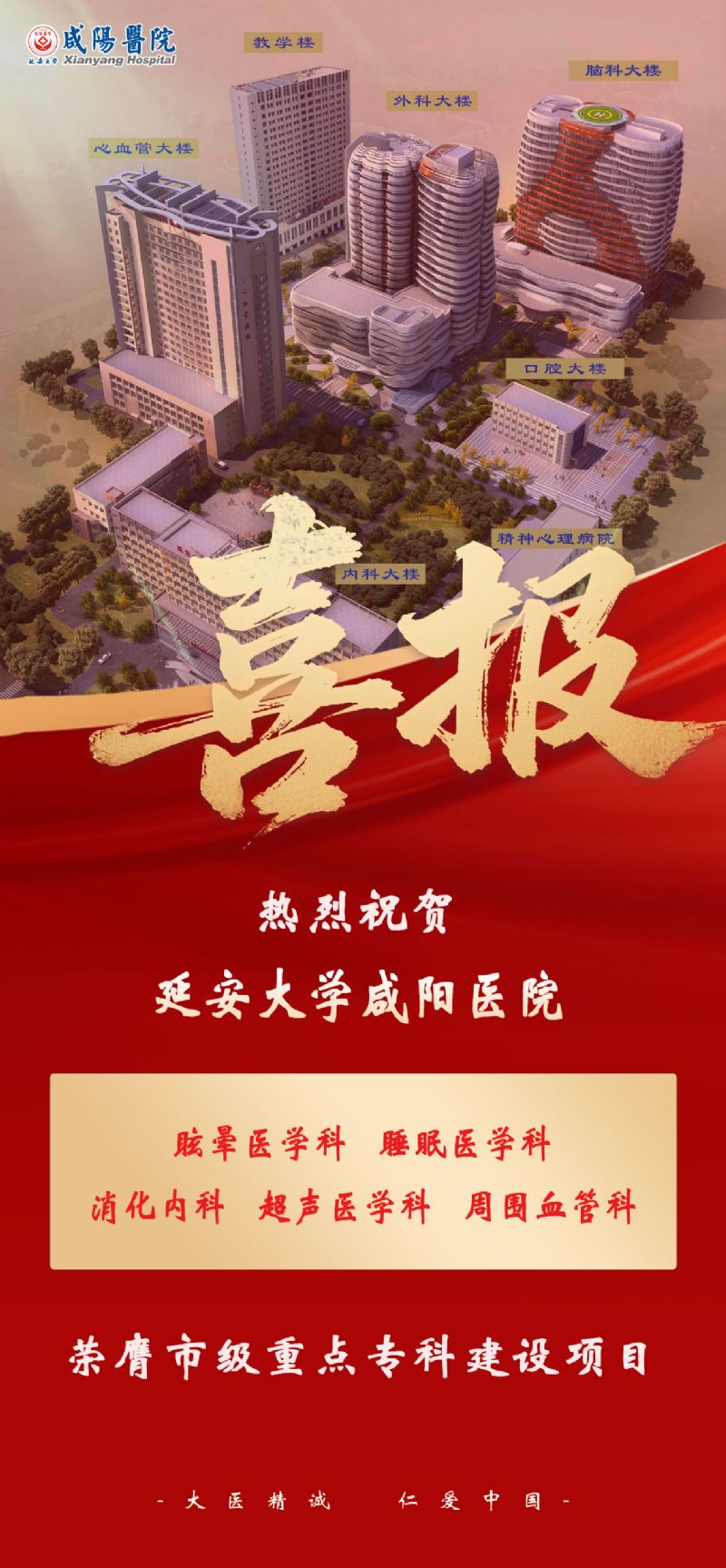 近日,咸阳市卫生健康委员会正式发布2025年度市级重点专科建设项目名单。我院眩晕医学科、睡眠医学科、消化内科、超声医学科、周围血管科,历经多轮严格评审,脱颖而出,荣誉登榜。这不仅是对我院学科建设成果的高度认可,更是我们在高质量发展道路上迈出的关键一步,标志着医院整体实力与专业影响力跃上新阶。