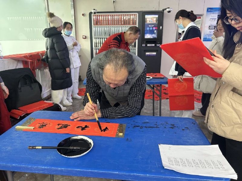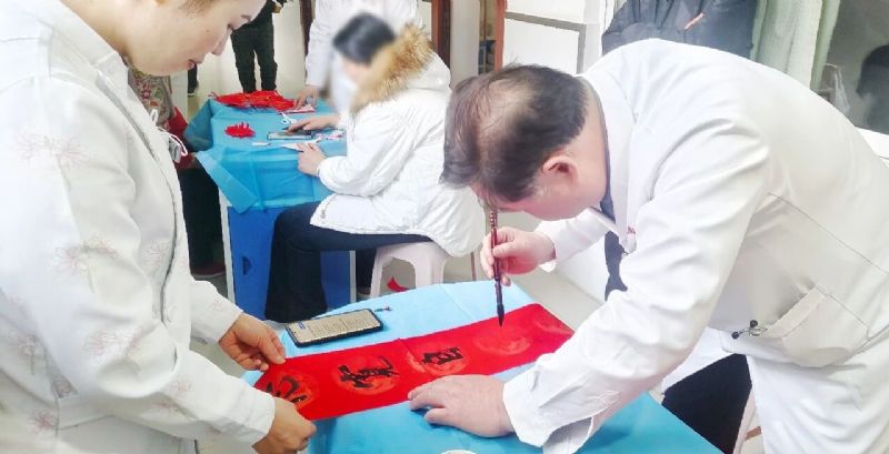 书写区墨香轻飘,患者们提笔书写“健康平安”“万事如意”等祝福。这些作品不仅装点了病区,更成为传递真情与希望的载体。“没想到在医院也能感受到这么浓厚的春节氛围,让我们忘记了病痛。”一位患者手持自己写的“福”字,笑容温暖。一纸墨香,连接了医患,也流淌出康复的信心。