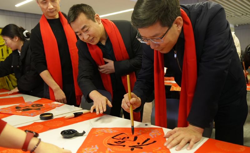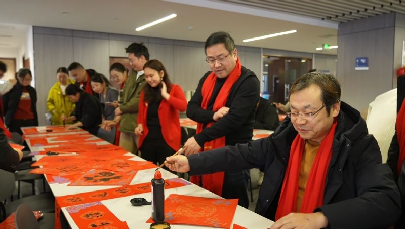 理论教学结束后,插花、写春联福字、剪纸三大互动体验区同步开放,现场气氛热烈。插花区内,大家巧手修剪、精心构思,将鲜花化作一件件充满生机的作品;书法区中,墨香四溢,一张张福字、一副副春联承载着对新春的期盼;剪纸区里,红纸翻飞,栩栩如生的窗花在指尖跃然呈现。大家在动手实践中放松身心,在协作交流中增进情谊,现场始终洋溢着欢声笑语。