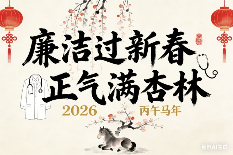 让我们以廉洁为笔,以初心为墨,共同书写2026年清正和美的开篇。愿全院干部职工:守得住底线、抵得住诱惑、经得起考验,过一个干干净净、清清爽爽、平平安安的新春佳节。