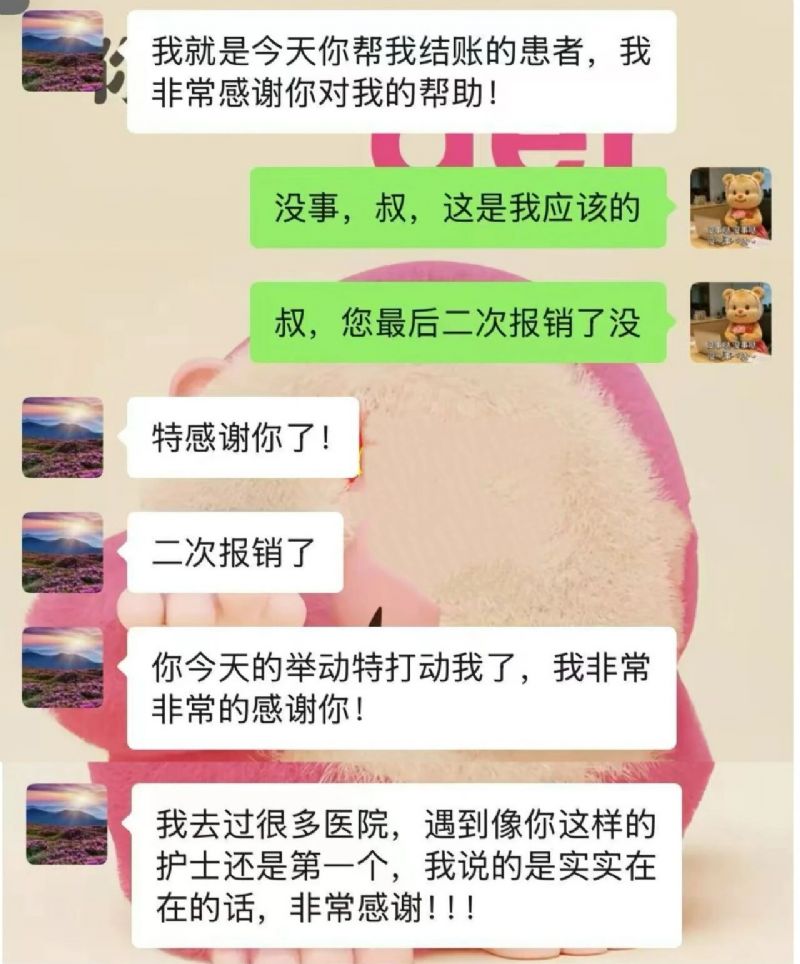 老人出院回家后,这件事本该就此翻篇。但几天后,护士的微信上突然收到多条消息。点开一看,是那位退伍军人患者发来的——“闺女,我回家了,心里一直惦记着你。”“我去过很多医院,遇到像你这样的护士还是第一个,我说的是实实在在的话,非常感谢!”字里行间,是老人最朴素的表达。护士有些意外,随即心头一暖。她回复道:“叔,这是我应该做的。您以前守护国家,现在能帮到您,我也特别开心。”她没想到,一件自己都快忘了的小事,竟被老人这样郑重地记在心里。