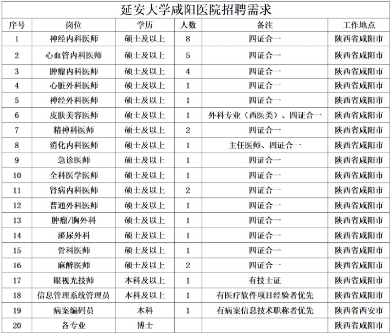 延安大学咸阳医院、眉山心脑血管病医院、深圳精诚医疗集团如皋医院、乐山老年病医院——四家医院联合招聘,诚邀优秀人才加入!